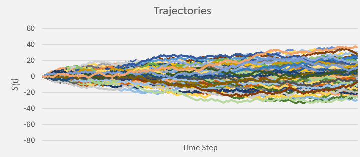 In the previous article we set up a really simple binomial tree model in Excel and observed that we could artificially change how the random trajectories drifted by altering the probability of moving up and down from
