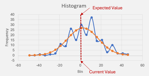 It’s constantly resetting itself. In fact, that histogram is really important, because at any point in time, the mean value of the histogram of a driftless process sits in the same spot.
