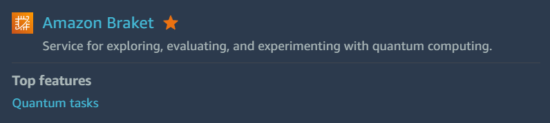 When logged in to AWS, you can use the search for services box (or hit Alt+S) to search for the Amazon Braket service: