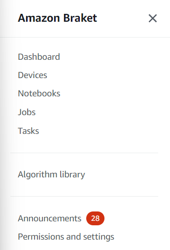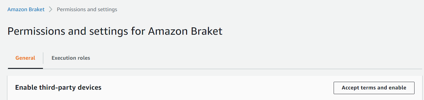 Navigate to the Amazon braket console, click permissions and settings in the bottom left panel.