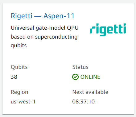 Access to specific quantum computers is highly region specific, in this example I had to ensure that I was operating out of California, USA which is referred to as us-west-1.