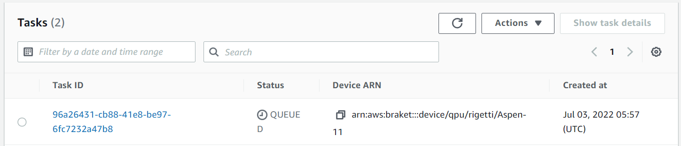 So I checked my Amazon Braket account under Tasks, and sure enough, there was a new entry:
