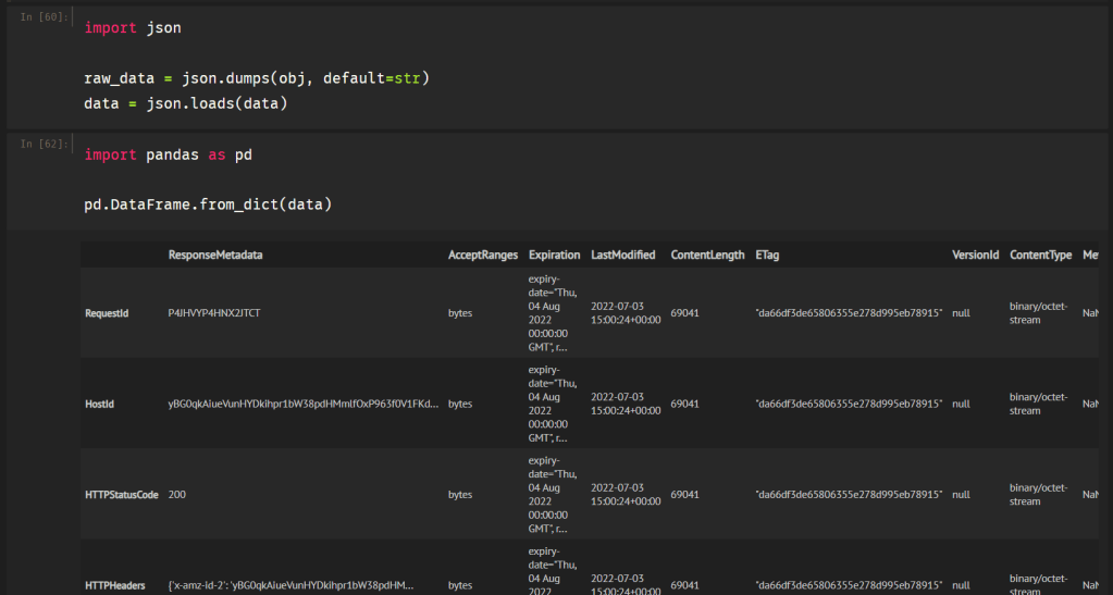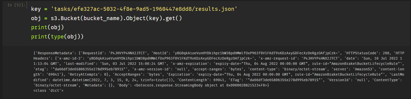 > obj = s3.Bucket(bucket_name).Object(key).get()