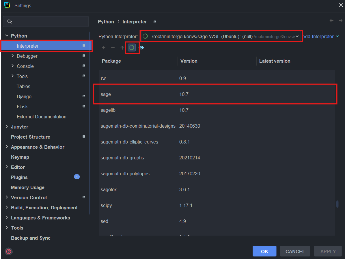 Connect PyCharm to SageMath