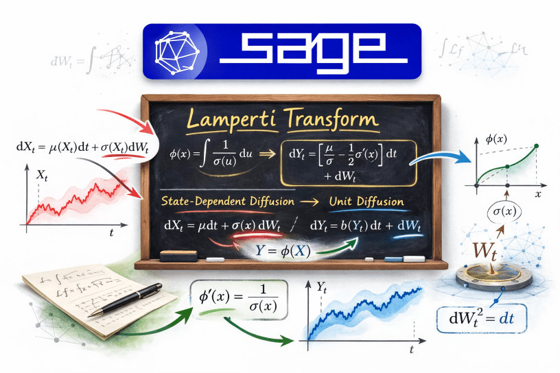 In this post we extended our SageMath stochastic calculus layer with a generic SDE transformation framework and used it to implement the Lamperti transform.